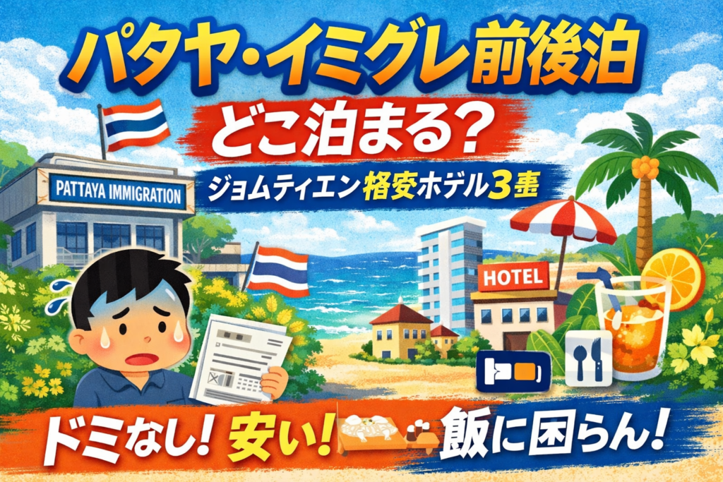 パタヤ・イミグレーション前後泊、どこ泊まる? ドミなし・安い・飯に困らないホテル3選【ジョムティエン】